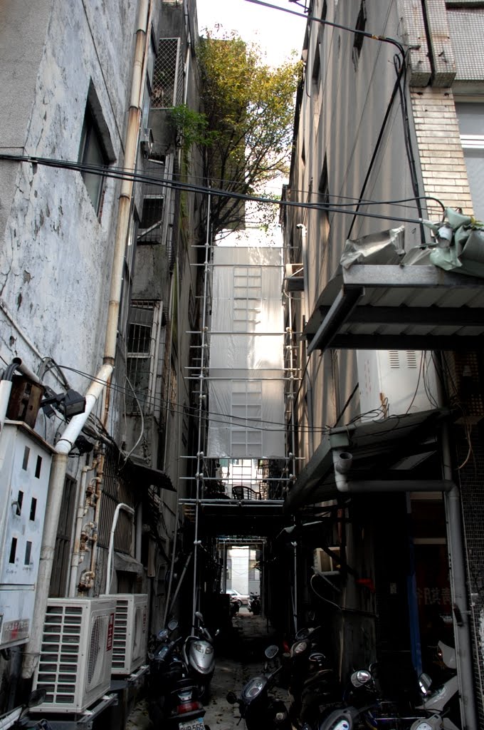 Ruin Academy, left and Hsieh Ying-Chun's orchid architecture on top of the alley.INSTANT TAIPEI
